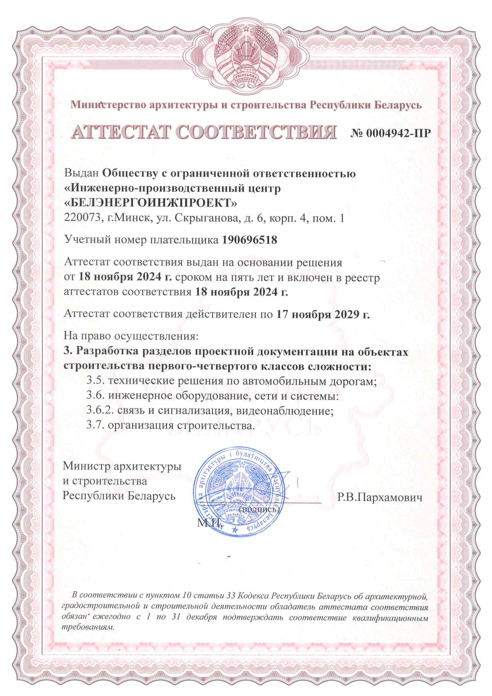 - В наличии имеются аттестаты соответствия, выданные Министерством архитектуры и строительства РБ: